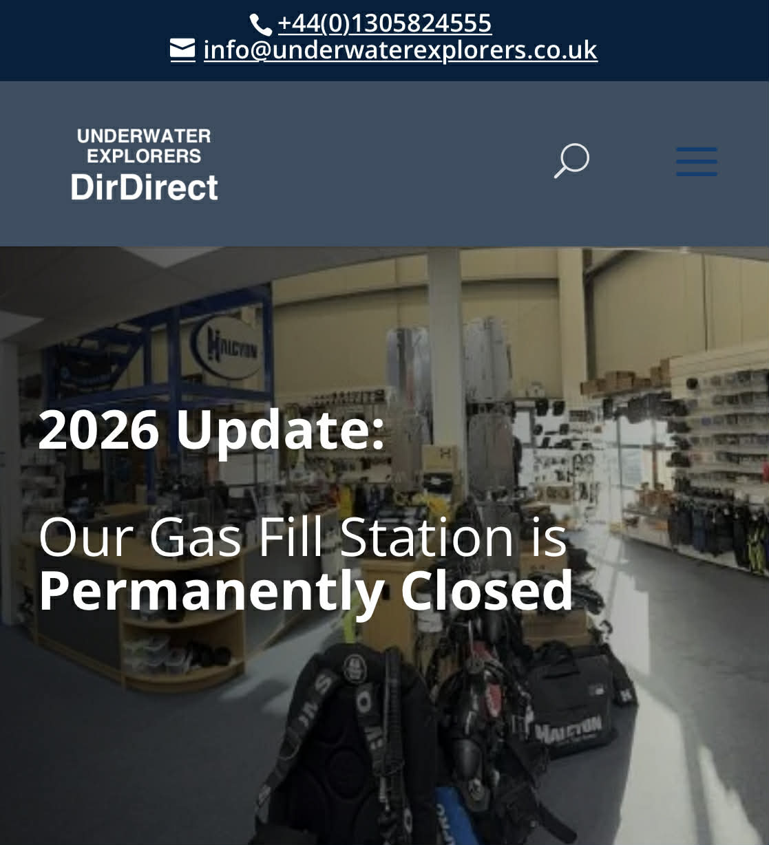 After careful consideration of changing market trends, we have decided to permanently close our public diving gas fill station as of 2026.